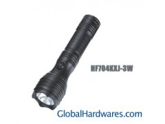 Aluminium flashlight 3 watt high power LED 80Lumen 6 hrs Burning time Use 4*AAA batteries size:163*40(diameter)mm Package:double blister qty/ctn:48pcs ctn size:67*35*40.5