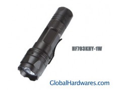 model no.:HF703KHY-1W Aluminium flashlight 1 watt high power LED 35 Lumen Burning time:5 hrs Use 3*AAA batteries size:130*35mm Package:double blister qty/ctn:50pcs ctn size:70*35*27 g.w./n.w.:9/7kgs