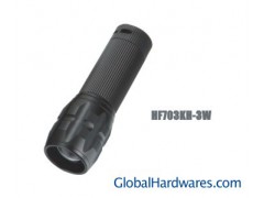 Model No.:HF703KH-3W Aluminium flashlight 3 watt high power LED 80lumen 5 hrs burning time 3*AAA batteries 105*30(diamter)mm Package:double blister qty/ctn:60pcs ctn size:52.5*41.5*24 g.w./n.w.:10/8kgs