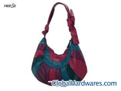 By the plum red, black, sky blue, light purple PU leather stitched together. Can be portable and jiankua