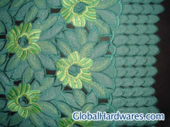 We can supply all kinds of African style lace and have many stock avaible now.We can accept small quantity order for 50 yards.the width:51-52'color;5-10packing;5yards/polybag or 15 yards/bundle