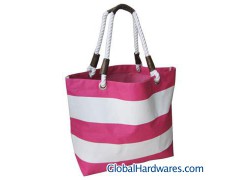 0110010B Handbag Size: 38.5x14x38cm Material: 600x300D/PVC polyester One large main compartment Cotton rope handle With purplish red and white stripe design Available in various colors and materials OEM & ODM are welcome