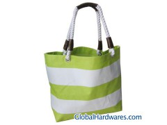 0110010A Handbag Size: 38x14x38cm Material: 600x300D/PVC polyester One large main compartment Cotton rope handle With light green and white stripe design Available in various colors and materials OEM & ODM are welcome
