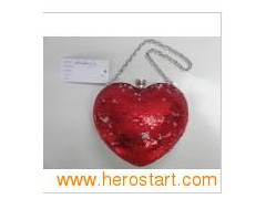 Red silk satin with sequins heart shape purse, mathcing linen and silver hardware. Our joint venture factory situated in Guangdong, China, is well equipped with the latest facilities, quality control & the efficient production of orders is assured. It comprises 37000 ft. Over 5 levels & houses a workforce of over 800 skilled workers, designers & professional managers. Our production capacity reaches 2 million PCS annually.