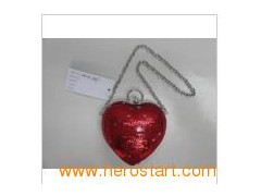 Red sequins heart shaped clutch bag, mathcing linen and silver hardware. Our joint venture factory situated in Guangdong, China, is well equipped with the latest facilities, quality control & the efficient production of orders is assured. It comprises 37000 ft. Over 5 levels & houses a workforce of over 800 skilled workers, designers & professional managers. Our production capacity reaches 2 million PCS annually.