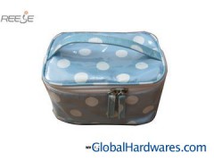 Cute box model cosmetic bag.Way zipper openings, Large capacity. Easy to carry .The color is blue