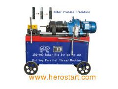 Product Name: Rebar Rib-stripping and Rolling Parallel Thread Machine Model: JBG-40D Function The machine is used to strip rebar rib first and roll parallel thread On rebar end. After that two threaded rebar sectors are connected by rebar coupler. Feartures 1. Adding the lead angle mechanism brings more smooth & full thread shape, labor-saving operation, and consistent diameter from top to bottom. 2. In addition to civil construction It is specially fit for rebar mechanical splicing in bridge and tunnel construction. 3. Within the range of same thread pitch It can adjust freely using the rib-stripping plate. 4. One clamp could complete rib- stripping and rolling thread on rebar end. 5. Both left and right-handed thread are processed with one handpiece. 6. Simple operation, compact structure, few mountings, reliable work, unique automatic break-make mechanism for cutting tool. For JBG-40D Machine Technical Data pls check the table.