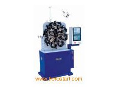 TCK-20BCNC omnipotent wire coiler has 3 axis: 1. CAMS SYSTEN The main portion of this machine comprises eight sets of precision slides, crank arms and cams fixture on the front face. Cams are fastened on the fixture by screws, and the inside transmission system rotates cams to puch crank arms to change the position of slides. The mechanical process of the machine allows three modes: Extrusion, pressing and dies formation. Per angle value of rotation is 0.09 degree, Per Command of rotation is allowed from 0.09 degree to 359.91 degrees. 2. FEEDING SYSTEM The pair of harizontally mounted Feed Rolls ( of in case of the wire diameter bigger than 1.2mm or. 48 in., 2pairs) are attched to the wire Feed shaft on the rear of the machine. Eah pair are grooved for a particular wire diameter and must be changed to suit the wire sixe used. The values for wire feed have been selected by user to prodce a spring with the required dimensions and shape. The wire lengths are input to the computer in increments of 0.01mm (. 000086 in. ) with a maximum length of 99999.99mm (39.370 in. ) 3. ROTARY QUILL SYSTEM