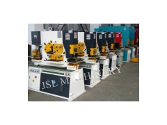 JSL DIW-60, 90, 120, 160, 200 and 250 industrial-grade hydraulic Iron Worker featuring multiple functions, including: Punch, Angle Shear, Flat Shear, Round/Square Bar Shear, Rec. Notch, V-Notch, Channel Shear, I beam shear, shearing T-bar, Press Brake, Angle Bending and Pipe Notching! It comes standard with: Quick-change coupling nut & sleeve, squaring arm with scale, electronic back gauge, gauging table with stops, punching base table, safety guards and more. Advantage: For E series: 1. Automatic Holding tight System 2. Temperature Cooling System For L series: 1. Automatic Holding tight System 2. Temperature Cooling System 3. Dual-working hydraulic ironworkers, which can make punching and notching station (two cylinders) simultaneity working without interferences.