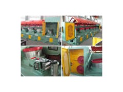 LZ-7/560 Straight Line Drawing Machine 1, Main parameter 1) Draw No. 7 2) Material to treat: Low, middle, high carbon steel 3) Material strength: <1250Mpa 4) Inlet Dia.: 5.5mm-6.5mm 5) Outlet Dia.: 1.8mm-2.5mm 6) Max. Total compressibility: 88% 7) Max. Drawing force: 7000N 8) Traction: Asynchronous motor with inverter control 9) Input by touch screen 10) Speed: 10m/s 11) Output: 18.5MT/per day/ for Dia. 2.0mm wire (880KG per hour) 12) Total power: 30KW+22KWX6+18.5KW 13) Size: 9650x2000x2400mm