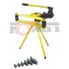Model: HHW-2J Max pressure: 9T Max stroke: 250mm Bending capacity: 21.3-60mm (1/2"-2") Bending shoes: 1/2", 3/4", 1", 1 1/4", 1 1/2", 2" Pipe wall thickness: 2.75-4.5mm G. W.: 53KG Dimension: 73*32*20CM