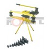 Detailed specifications for the hydraulic pipe bender: Model: HHW-3J Max pressure: 19T Max stroke: 320mm Bending capacity: 21.3-88.5mm (1/2"-3") Bending shoes: 1/2", 3/4", 1", 1 1/4", 1 1/2", 2", 2 1/2, 3" Pipe wall thickness: 2.75-5mm G. W.: 117KG Dimension: 93*40*21CM