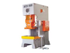 The body of JF21 series press is welded with steel plate, so it is with good rigidity and stable precision. The crankshafl is placed vertically, so the structure is compact and the contour is beautiful. Using the combined pneumatic friction clutch and brake, so the engagement is smooth, the action is agile and the noise is low. The gear pair adopts the flooding system lubrication. The slide block is six-face rectangle with longer guide track whose face is bronze panel, so the guide precision is good. The slideblock of the machine is used motor to adjust the die set and set lifting balance cylinder. The air pipeline is controlled by safety duplex valve. The PLC device, air cushion device, automatic feeding device, times of stroke is adjustable device and photoelectrical protector are installed according to the requirements of user's and can be equipped wit various automatic equipment which conform to the safety standard of press. We can also design, manufucture special specification press according to the user's requirements. As we are continually improving&developing our products, the equipment supplied maybe do not agree in all details with the description and/or illustration shown in this catalogue