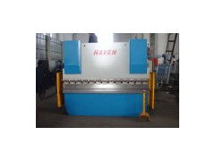 Hydraulic press brake with E200 main function and completed: 1)Steel-welded construction, vibration to eliminate stress, with high strength and good rigidity; 2)Hydraulic top-drive, steadiness and reliability 3)Mechanical stop, steel torsion bar to maintain synchronization, high precision; 4)Motorized-adjusting device of back-gauge and RAM's stroke, fine adjusting by hand wheel, numerical display; 5)Deflection compensation installed on the top die, manual crowed bottom die holder is adopted for the machine above 250tons; 6)Travel limit protection. 7)Remote pedal control device 8)Full machine guarding with safety interlocker. 9)Duplex linked press brake is available as per client's demand. 10)Electric components are from Siemens 11)Oil-seal rings are imported from Japan, NOK brand 12)Hydraulic valves are from OMEGA brand, USA 13)NC system E200 14)With ball screw