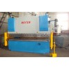 Hydraulic press brake: 1) Steel-welded constuction, vibration to eliminate stress, with high strength and gppd rigidity; 2) Hydraulic top drive, steadiness and reliability. Mechanical stop, steel torsion bar to maintain synchronization, high precision; 3) Motorized-adjusting device of backgauge and rams stroke, fine adjusting by handwheel, numerical display; 4) Deflection compensation unit installed on the top die. Manual crowned bottom die holder is adopted for the machine above 250T, Length 4000mm; 5) Travel limit protection. Full machine guarding with safety interlocker.