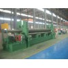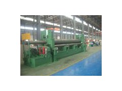 The top roller can move horizontally and lift, the top roller lift for changing curvature of plate, horizontal move for symmetry of top roller and two bottom rollers axes line vertical surface, realize technics requirement of plate end bend and other bend, there is no need of pressure machine in manufacture. The machine can finish two end of plate pre-bend and shape and straighten at the same time without return.