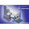 | Industrial spray booth ,spray booth ,painting booth of Specification: 1. Outside Size: (mm) 7130*5600* 3800mm ( L*W*H ) Main doors 3-fold, 3200* 2700mm ( W*H ); Inside Size: (mm) 7000*4000* 2800mm ( L*W*H ) Service door 1-fold, 800* 2000mm ( W*H ) 2. Cabin System: (1)Wallboard EPS (epispastics polystyrene)Colorful Steel Skin Boards, tongue and groove style, compound construction, Aluminum-alloy Frame, Anti-flame and Heat-Insulation, thickness: 70mm (2)Basement: Full Grid, Adjustable Height, Galvanized Steel Sheet Construction, Three Embossed Steel Ramps 3. Air Circulation System: (1)Inhaling Ventilator <1>Turbo Inlet Fan A. Blower Capacity: 28000m3 /h; B. Pressure: 800 Pa; C. Rolling Sped: 940rmp; D. Power: 7.5 kw; E. Quantity: 1 sets (2)Exhaust Ventilator <1>Turbo outlet Fan A. Blower Capacity: 28000m3 /h; B. Pressure: 800Pa c. Rolling Sped: 900rmp; D. Power: 7.5kw; E. Quantity: 1 set (3)Air Volume: 28000m3 /h; (4) Air Speed: 0.28m /s 4. Air Purification System: Dual Filtering Structure, The Primary Filter can capture granules larger than 10 um. Ceiling Filter capture granules bigger than 5 um. The whole purification system has capacity of large volume of dust. Its filtering rate reaches 98%. Air pressure gauge, TSP ≤ 1.4mg/m3. 5. Heating System: (1)Diesel Burner: Italy Riello Brand, RG5S Diesel Burner, 26000Kca/h; (2)Heat exchanger:Stainless Steel,186KW,Argon Arc Welding, the heat exchange rate 85% (3)Max Temp: 80 degree, Heating Time: 3-5 min(20 -60 degree ), Fuelconsumption: 4 -5kg /vehicle 6. Light System: (1)Ceiling Light: 8 unitsx4Pcs=32Pcs, 36W ,total 1152W OSRAM Lamp; (2)Bottom Light: 10pcs 2 X 36W ,total 720W OSRAM Lamp, 1200Lux ,IP54 Grade with tempered glass 7. Electric Controlling System: Micro Computer Program Controlling, spray & baking switch, light switch. Emergency stop, breakdown alarm 8. Environmental System Multi-layer fiberglass filter |