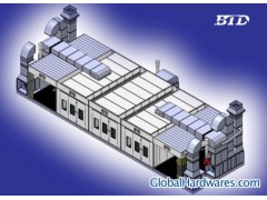 | 7M Preparation-Painting and Drying production line of specification : 1.Booth Dimensions - Internal Size(L*B*H) Preparation :7000*4000*2800mm Painting booth :7000*4000*2800mm Drying booth: 7000*5500*2800mm - External Size(L*B*H): 8650*25000*3460mm 2.Foundation and Floor -Loading Capacity of Galvanized Grating :650KG/ wheel, - Surface Area :27M*2 Full Galvanized Grating gills*5unit - Metal Basement:800mm Height should be need to dig foundation - Drive-in Ramps NO Wall and Door - Steel Wall and Roof Panel Double Construction with Insulations EPS 60mm -Thickness with Insulations EPS 50mm 5-Folded Entrance Door With Safety Glass Window 3200*2700 mm (B*H) -3unit -Operators Door With Safety ,Glass Window 800*2000 mm (B*H) 2PCS 3.Lighting - Side Lightings Preparation : 24 Units, each 4*58W, Total 1392W Painting booth : 32 Units, each 4*58W, Total 1856W Drying booth: 4 Units, each 2*58W, Total 464W - Brightness Preparation: >800 Lux, IP54 Grade Painting booth :>1000 Lux, IP54 Grade Drying booth : >300 Lux, IP54 Grade 4.Filtration - Prefilters Fiberglass,Paint-Stop-Filters Plate type duel filters - Ceiling Filters EU5 Fine Filters, 6 Units - Floor Filters Fiberglass, Paint-Stop-Filters Ventilation System 2 Unit Preparation -Direct Drive Motor (Fresh Air):1*5.5KW,970RPM,380V,50HZ motor certificationC -Direct Drive Motor (Exhaust Air) NO - Fan Capacity 18000m*2m/h - Air Flow Speed +/- 0.15m/s Ventilation System 2Unti Painting booth -Direct Drive Motor (Fresh Air):2*7.5KW,970RPM,380V,50HZ motor certificationCE -Direct Drive Motor (Exhaust Air):2*7.5KW,970RPM,380V,50HZ Domestic motor certificationCE - Fan Capacity 25000m*3m/h - Air Flow Speed +/- 0.28m/s in an empty booth Ventilation System 1 Unit Drying booth -Direct Drive Motor (Fresh Air):1*7.5KW,970RPM,380V,50HZ motor certificationCE -Direct Drive Motor (Exhaust Air) NO - Fan Capacity 25000m*3m/h - Air Flow Speed +/- 0.28m/s in an empty booth Heating System 2Unit Painting booth - Heating Exchanger Stainless Steel 1Gr18Ni9Ti -Heating Exchange Capacity 2*200KW(260.000cal/H) RIELLO - Max. Drying Temperature 80 degree - Heating time:3-5 min (from 20 to 60 degree) by Drying Phase Heating System 1Unit Drying booth - Heating Exchanger Stainless Steel 1Gr18Ni9Ti -Heating Exchange Capacity 2*200KW(260.000cal/H) RIELLO - Max. Drying Temperature 80 degree - Heating time:3-5 min (from 20 to 60 degree) by Drying Phase - Heating Type Diesel 6.Control Board - Control system Stander control Delta: Depressurization start system: EN60204-1-2006 - Function:Spraying ,baking, warming spray paint, emergency stop switch - PLC yes - Import element master device import element - Overpressure Manometer yes - Alarm equipment yes |