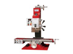 Compact, economical mini ertical drilling/mlling machine. Variable speed enables to oprerate easily. Spindle is supported by high precision taper roller bearing. Gear head provides greater torque. Mill head may be tilted 90 degree Adjustable taper gibs.