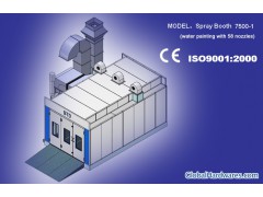 | Spray booth BTD 7500-1( water painting with 58 nozzles)of specfication: 1. Outside Size: (mm)7130*5600* 3800mm ( L* W*H ) Main doors: 3-fold, 3200* 2700mm ( W*H ); Inside Size: (mm) 7000*4000* 2800mm ( L*W*H ) Service door 1-fold, 800* 2000mm ( W*H ) 2. Cabin System: Wallboard: EPS (epispastics polystyrene)Colorful Steel Skin Boards, tongue and groove style, compound Construction, Aluminum-alloy Frame, Anti-flame and Heat-Insulation, thickness: 70mm 3. Basement: Full Grid, Adjustable Height, Galvanized Steel Sheet Construction, Three Embossed Steel Ramps 4. Air Circulation System: Inhaling Ventilator Turbo Inlet Fan Blower Capacity: 35000m3 /h; Pressure: 800 Pa. Rolling Sped: 940rmp; Power: 7.5 kw Quantity: 1 sets Exhaust Ventilator Turbo ou tlet Fan; Blower Capacity: 35000m3 /h; Pressure: 800Pa; Rolling Sped: 900rmp; Power: 7.5kw; Quantity: 1 set; Air Volume: 35000m3 /h; Air Speed: 0.4m /s 5. Water painting system: 58 nozzles distributing to three lines in ceiling; 3 additional small fans for water painting, power: 1.5 KW / set 6. Air Purification System: Dual Filtering Structure, The Primary Filter can capture granules larger than 10 um. Ceiling Filter capture granules bigger than 5 um. The whole purification system has capacity of large volume of dust. Its filtering rate reaches 98%. Air pressure gauge, TSP ≤ 1.4mg/m3. 7. Heating System: Burner: Italy Riello Brand, RG5S Diesel Burner, 26000Kca/h; Heat exchanger: Stainless Steel, 186KW, Argon Arc Welding, the heat exchange rate 85%; Max Temp: 80 degree, ceating Time: 3-5 min(20 -60 degree ), Fuelconsumption: 4 -5kg /vehicle 8. Light System: Ceiling Light: 8 unitsx4Pcs=32Pcs, 36W, total 1152W OSRAM Lamp; Bottom Light: 10pcs 2 X 36W, total 720W OSRAM Lamp, 1200Lux. IP54 grade with tempered glass 9. Electric Controlling System: Micro Computer Program Controlling, spray & baking switch, light switch. Emergency stop, breakdown alarm 10. Environmental System: Multi-layer fiberglass filter. |
