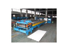 Steel tile roll forming machine 1. Coil width(mm): 1250x(0.4~0.6)L 2. Working speeding: 2-3m/min (we also can design it in 6-8m/min) 3. Roll station: 15 station 4. Material of roller: 45# forge steel, extract processed and plated with hard chromium. 5. Material of main shaft: 45# steel, extract processed and thermal refined 6. Power of main electromotor: 5.5kw 7. Power of hydraulic pressure station electromotor: 5.5kw 8. Pressure of hydraulic pressure station: 10~12Mpa 9. Electricity control system: All use PLC control; Transducer use Panasonic; Coding organ use Omron. 10. Size of the main machine: