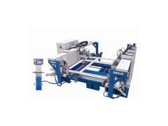 Function: It can accomplish welding of "θ ", "± "and Rectangle, and the efficiency increases by 3 times Features: The head adopt special rigidity design which has a rigid structure to increase the welding range and suit to the complex window production mode. Horizontal lay and adopt the strengthened rigidity design, firm and stable. The moving part of welding head adopts linear bearing totally which can ensure the work precision. Adopt particular surface orientation system which can ensure the high precision. Particular know-how which increased the strength of the welding corners. The time of the heating start from the time of the heat plate fix at the right place which is in accordance the criterion of European welding style. Can fix four kinds of V-type welding head at the right place automatically, easy adjustment. 2 mm-seam general welding and 0.2mm-seam colored profile seamless welding is available and can be transferred by adjustment. Adopt roller type to change teflon and shorten the down time. Controlled by imported seven axes CNC system which can compensate the error of the size, and increase the precision of the welding size. The whole machine adopt high quality electric, and mechanism parts which makes it reliable. With high speed automatic feed profile system to increase the production efficiency. High-grade and stable bed ensure aesthetics and ergonomics which can reduce the operator's work. 17 inches control screen together with the graphical interfaces to ensure the operation easy. Parameter: Air Pressure: 0.5~0.7MPa Air Consumption: 120L/min Input Voltage: 380V 50Hz Max. Input Power: 13KW Welding Height: 35mm~120mm Welding Width: Corner Welding: 120mm; Mullion Welding: 90mm Finished Window Size: 600mm× 640mm~2100mm× 3000mm Overall Dimension: 3800mm× 4500mm× 2000mm Weight: 3500kg