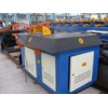 DOUBLE BENDING MACHINE (BENDING CENTER) DESIGN FEATURES The Robot Series of double bending lines are fully automatic systems that can be controlled by a single operator. Bars to be bent can be pre-cut and placed on the loading table or can be automatically transferred from a shear line. One stationary and one moveable bending table are automatically positioned and bend angles set from the part program. The PLC control provides a production cycle of as many as 16 bends with the program stored for future use. OPERATING FEATURES The robotic double bending system consists of a transfer bench; Two lifting levers; Twin bending units and control system. The transfer bench contains a number of powered rollers. The lifting levers pneumatically position the bars above the bending units and transfer the bars to be bent which can be one or more based on the size of bar and production requirements. The PLC control housed in a rugged steel console permits the operator to program all of the system functions from a single position. Bending length is automatically set via servo motor. Bending speed and bending angle are set by the part program.
