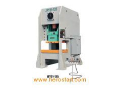 Welded Steel plate framework, specially treated and formed a D shape hole form C shape to have high intensity and rigidity. Combined dry type pneumatic friction clutch and brake. Cluster gear adopts the flooding oil lubrication. JFY21 series adopts rigid pressing down style overload protector. JHY21 series adopts hydraulic overload protecting device. JFY21/JHY21-45 adopts manual shut height adjustment with scale display. JFY21/JHY21-63 and above type adopts electric shut height adjustment with digital display. Lifting balance cylinder device. Electric compelling grease lubrication system Concentrated control by PLC with international brand. Buttons, indicators, AC contactors, air circuit breakers and other controlling devices are imported from internationl brand. Equipped with optional air cushion device, automatic feed shaft and photoelectric protector, which can used to work with various automatic equipments. Semi-straight side with high performance and fixed bed press Semi-straight side machine body Dry-type pneumatic friction clutch Rigid shearing block safety device (for JHY21 series ) Hydraulic overload protection(for JHY21 series)