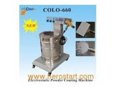 Powder Coating Equipment (Colo-500-PGC1) Powder coating gun, powder coating machine, powder coating system, powder coating equipment, powder coating control unit Colo-500-PGC1 Powder Coating Equipment, it is gema PGC1 copy model, can interchange with original gema powder coating equipment. Top quality model, working effect is same. Good for all the work piece. The process of the powder coating is like this: The powder is fluidized in the powder hopper. The injectors transport the powder through the hoses to the guns. The guns spray a powder/air mixture onto the workpieces. Configuration: Powder gun *1 + powder pump*1 + powder container*1 +trolley*1 + oil-water separator*1 + air pressure regulator*1 and other hose with accessories.