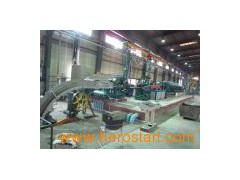 This line adopts continuous casting and rolling way to produce electrotechncial using normal aluminum, high purity aluminum, aluminum alloy rod(such as Al-Mg alloy, Al-Mg-Si alloy etc ). The finished rod diameter isΦ 9.5mm, Φ 12 mm, Φ 15mm. Five- wheel casting machine(including casting ladle)oil hydraulic sheareractive straightener, rolling wheel take-up rod coiling device, electrical control system of continouos casting and rolling line, lubricating oil system of continuous rolling machine, emulsion circulating system of coninuous rolling machine, holding furnace etc.