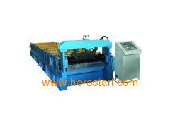 Forming machine Product Feature: The product from the roll forming machines looks beautiful and widely used as the roof & wall of garden, factory, hotel, exhibition center, etc Machine's components: Roll forming machine consists of uncoiler, coil sheet guiding device, main roll forming system, cutting device, Hydraulic station, PLC control system and support table. Main technical parameters: 1 Suitable material: Color steel sheet or galvanized steel sheet 2. Thickness of raw material: 0.4_0.7mm 3. Yield strength of material: 235Mpa-345Mpa 4. Forming speed: About 15m/min 5. Power Requirement Main motor power: 5.5Kw(Depend on final design) Hydraulic station power: 2.2Kw (Depend on final design) 6. Uncoiler's loading capacity Max. Capacity: 5000kgs(can be increased to be 10T) 7. Controlling system: Mitsubishi PLC & converter 8. Machine's size: About 20m*1.5m*1.4m (Depend on final design) 9. Machine with CE certificate. Add to Basket