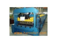 Floor deck roll forming machine Metal forming machine Cold roll forming machine Product Feature: The metal deck produced by floor deck forming machine has high strength with big wave length. It adheres well to concrete. Used on high building, it not only saves steel mold plate, but also reduces the weight of storey. With the same bearing capacity, it economized steel and cuts down investment accordingly. Machine's components: Floor deck forming machine consists of uncoiler, coil sheet guiding device, main roll forming system, cutting device, hydraulic station, PLC control system and support table. Main technical parameters: 1 Suitable material: Color steel sheet or galvanized steel sheet 2. Thickness of raw material: 0.8_1.2mm 4. Forming speed: About 12-15m/min 5. Power Requirement Main motor power: 18.5 Kw(Depend on final design) Hydraulic station power: 5.5Kw(Depend on final design) 6. Uncoiler's loading capacity Max. Capacity: 5000kgs (can be increased to be 10T) 7. Controlling system: Mitsubishi PLC & converter 8. Voltage: 380v 3 phase 50Hz or as per the customer's requirement 9. Machine's size: About 28m*1.5m*1.6m (Depend on final design) 10. Machine with CE certificate. Add to Basket