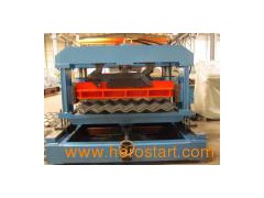 Tile Forming Machine Product Feature: The colored steel tiles produced by roof tile forming machine look beautiful, elegant and noble. They are widely used as the roof of garden, factory, hotel, exhibition center and villa, etc. Machine's components: Roof tile forming machine consists of uncoiler, coil sheet guiding device, covering film device, main roll forming system, pressing device, cutting device, Hydraulic station, PLC control system and support table... Main technical parameters: 1. Suitable material: Color steel sheet 2. Thickness of raw material: 0.5-0.6mm 3. Yield strength of material: 235Mpa 4. Working speed: About 1.5-2m/min & 4-5m/min. (For option) 5. Step distance: Adjustable according to requirement (>=250mm) 6. Power Requirement Main motor power: 5.5 Kw(Depend on final design) Hydraulic station power: 5.5Kw(Depend on final design) 7. Uncoiler's loading capacity Max. Capacity: 5000kgs (can be increased to be 10T) 8. Controlling system: Mitsubishi PLC & converter 9. Machine's size: About 18m*1.5m*1.4m (Depend on final design) 10. Machine with CE certificate. Add to Basket