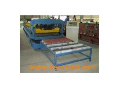 Tile Forming Machine Product Feature: The colored steel tiles produced by roof tile forming machine look beautiful, elegant and noble. They are widely used as the roof of garden, factory, hotel, exhibition center and villa, etc. Machine's components: Roof tile forming machine consists of uncoiler, coil sheet guiding device, covering film device, main roll forming system, pressing device, cutting device, Hydraulic station, PLC control system and support table. Main technical parameters: 1. Suitable material: Color steel sheet 2. Thickness of raw material: 0.5-0.6mm 3. Yield strength of material: 235Mpa 4. Working speed: About 1.5-2m/min & 4-5m/min. (For option) 5. Step distance: Adjustable according to requirement (>=250mm) 6. Power Requirement Main motor power: 5.5 Kw(Depend on final design) Hydraulic station power: 5.5Kw(Depend on final design) 7. Uncoiler's loading capacity Max. Capacity: 5000kgs (can be increased to be 10T) 8. Controlling system: Mitsubishi PLC & converter 9. Machine's size: About 18m*1.5m*1.4m (Depend on final design) 10. Machine with CE certificate. Add to Basket