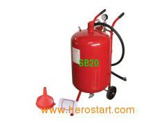 Portable sand blaster machine Portable sand blaster Teams up with an air compressor to spray granular abrasives at high pressure. Equipped with a nozzle and shot-off valve, pressure gauge, 4 assorted ceramic nozzles, 2.5m hose, filling funnel, water trap, 6"rubber wheels, and canvas hood. Has safety pressure release vale, 3/8"brass vale for air hrottling and sand metering.Model SB5 SB10 SB20 Air Requirement 6-25 CFM At 60-125 PSI Tank Dia 26cm 31cm 38cm Overall Dim (cm) 34*34*75 34*34*85 38*38*90 Weight (kgs) 13 19 21 Carton Dim (cm) 65*40*35 85*40*38 88*48*43 QTY/Container:20/40 306/630pcs 204/426pcs 150/315pcs Online Add to Basket
