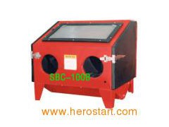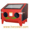 Bench top sand blast cabinet Sand blaster Function: Blast rust, corrosion and paint on large parts in an enclosed cabinet to keep dust off the floor and out of the air. 1) Cleaning parts quickly and easily. 2) Through the sealed rubber glove parts, you control the high-efficiency air blast gun inside, directing 100 maximum PSI abrasive flows to clean parts FAST! For use with glass beads, silica sand, alum oxide and more. Blast away dirt, paint or any foreign build-up effortlessly. Portable enough to use on a workbench. Fluorescent light gives you better visibility. Includes rubber gloves, blast gun, 4 assorted ceramic nozzles, dust collector port, hopper and screen.