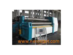 Hydraulic CNC rolling machine 1. Superiority and some features usually only in large size plate rolling machine: 2. Fully hydraulic-driven (as opposed to the usual manual and mechanical movement) 3. Multiple independent hydraulic motor (as opposed to only one set of electric motors, reduction unit and gear) 4. Automatic hydraulic line speed compensation (as distinct from inefficient clutch) 5. Clamping pressure control (as opposed to holding without control) Machine model options 1. Roller surface hardened 2. Hydraulic roller cone winding attachment 3. Surface finishing 4. Hydraulic top support system 5. Hydraulic side pressure 6. Brace perimeter security fence 7. CNC control system 8. Automatically oil cooler Model standard device 1. LCD digital electronic reading devices 2. Two clamping pressure rollers, driven by two independent hydraulic motor 3. Driven hydraulic front controller more speed, 4. Control of the entire machine 5. Emergency security emergency stop
