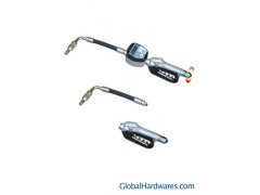 Double valve oil meter gun Complete with:Electronic oil meter Swivel joint Outlet flexible hose with metal bent spout equipped with anti-drip plug. Optimum use in connection with pumps 3:1 and 5:1. We advise to not connect it with transfer pumps.
