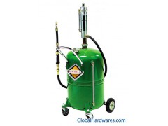 Oil dispensing kit with wheel mounted reservoir of 65 litres equipped with level gauge.Complete with: double acting pump, adaptor, delivery hose G1/2" -4 meters, double valve oilgun complete with G1/2" ,straight swivel anti-splash funnel.