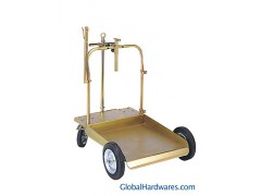 Heavy duty trolley for drums of 180/220 kg. Equipped with 4 wheels 2 fixed and 2 casters (one caster is fitted with brake) adjustable quick device for an easy and safety clamping of the drum adjustable support suitable for gun, hose or other accessories The trolley is preset to receive a fixed (not swiveling ) hose reel