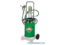 The reservoir made from pressed and weldless steel ensures rugged strength. The device is complew with: air operated guease pump ratio 60:1 adaptor grease deoivery hose (1/4"-4meters) .Grease control handle with outlet flexible/cranked steel pipe equipped with straight swivel. 【Technique Date】 Air pressure: 5-6barPump ratio: 60:1Conduit Lenght: 2.5m Export amount: 500g/min tank: 13kgSpecification: 360MMX310MMX885MM