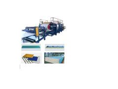 EPS Sandwich Panel equipment, Iaminator for corrugated sandwich panel mainly consists of a roll forming machine and a sandwich Panel laminating system. Through this line, corrugated sandwich panels can be produced directly, without the shortcoming that traditional corrugated sandwich panels have to be laminated manually after the forming of corrugated sheet. Moreover, both the roll forming machine and the laminating system can work independently. The roll forming machine of the line consists of feeding system, roll forming systm and cutting system, while the laminating system is made up of such equipment as decoiler, feeding, squeezing, heating, laminating, edge rolling, edge turn-over, groove-making, edge pruning, pneumatic device, automatic cutting and PLC. The whole machine possesses advanced working crafts. The sandwich panels of this line are widely used as the roof and wall of factory, warehouse, garage, exhibition center, cinema, theatre, gymnasium, civil construction, stadium, cold storage, etc. Technical parameters 1. Size: 42000mm x 3600mm x3300mm (Length xWidth x Height) 2. Controlling system: PLC 3. Total power (including heating): About 40kw 4. Working speed: 1000~3000mm/min 5. Suitable working temperature: About 25 6. Density of EPS: >18kg/m 7. Suitable material for production: 1000~1200mm (0.5~0.6mm)