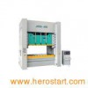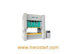 JM36 JMD36 series gantry type double-point high performance press machine Features: Welded steel plate framework with high intensity of machine body Double crankshaft pitmen totally eliminating side forces by reverse rotation Imported dry type friction clutch and brake, combined wet multi discs friction clutch and brake is optional Equipped with hydraulic overload protecting device Eight-side lengthened guide with high precision Electric compelling grease lubrication system Balancing cylinder adopts manual lubrication system One set of blowing device Controlled by PLC with international brand Buttons, indicators, AC contactors, air circuit breaks and other controlling devices are imported from international brand Electronic cam device with intelligent top dead center stop function and several safety function Optional air cushion device NC feeding machine, light curtain and inverter with international brand to fulfill stroke adjustment JMD36 series equipped with multi pitmen framework, suitable for flat stretching