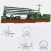 1. Machine usage range: This equipment is three rolls machine, upper roller can adjust. It is used to bend different diameter of steel into circle sharp. And it is widely used in chemical industry, ships industry and so on. 2. Main technical data: Max thickness of plate: 12mm Max width of roll board: 3000mm Up roll diameter: Φ 280mm Down roll diameter: Φ 240mm Drive speed: About 4.0m/min Main motor: 11kw Lifting motor: 5.5kw Main speed reducer gear: ZSY224 Vice speed reducer gear: ZQ350 The distance of two down rolls: 360mm Min diameter of bending circle: 500mm Max yield limit of sheet metal: 245Mpa 3. Main structure and working principle: 3-1, this machine is upper roller adjust type, and upper roller in middle of two down rolls and drove by lead screw to move up/down and to bend the steel plate. 3-2 the equipment composed of working parts and drive system two parts. The working parts composed of right and left bearing plate, one upper roll, two down rolls (these three rolls material is 45# steel with heat treatment. ), lifting screw and worm wheel and other accessory parts. Down rolls drive upper rolls to move. Upper rolls can adjust up/down. Drive system composed of main motor, main speed reducer gear and other accessory parts. 3-3 down rolls were drove by main motor and main speed reducer gear, the spindle of main speed reducer drive two down rolls by one group gears, the direction adjusted by the main motor. 3-4 upper rolls lifted by accessory motor and vice speed reducer drive worm pole and worm where of right/left rolls bearing plate. 3-5 unloading device is used for bending circle type to remove the workpiece. While unloading the upper rolls move to up limit position, the balance device on upper rolls ends hit upper rolls to remove the workpiece. 4. Main parts: 4-1 working rolls China 4-2 main motor China 4-3 main electrical parts SUZHOU 4-4 main speed reducer jiangsu