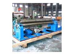 W11-12× 3000 rolling machine 1. Machine usage range: This equipment is three rolls machine, upper roller can adjust. It is used to bend different diameter of steel into circle sharp. And it is widely used in chemical industry, ships industry and so on. 2. Main technical data: Max thickness of plate: 12mm Max width of roll board: 3000mm Up roll diameter: Φ 280mm Down roll diameter: Φ 240mm Drive speed: About 4.0m/min Main motor: 11kw Lifting motor: 5.5kw Main speed reducer gear: ZSY224 Vice speed reducer gear: ZQ350 The distance of two down rolls: 360mm Min diameter of bending circle: 500mm Max yield limit of sheet metal: 245Mpa 3. Main structure and working principle: 3-1, this machine is upper roller adjust type, and upper roller in middle of two down rolls and drove by lead screw to move up/down and to bend the steel plate. 3-2 the equipment composed of working parts and drive system two parts. The working parts composed of right and left bearing plate, one upper roll, two down rolls (these three rolls material is 45# steel with heat treatment. ), lifting screw and worm wheel and other accessory parts. Down rolls drive upper rolls to move. Upper rolls can adjust up/down. Drive system composed of main motor, main speed reducer gear and other accessory parts. 3-3 down rolls were drove by main motor and main speed reducer gear, the spindle of main speed reducer drive two down rolls by one group gears, the direction adjusted by the main motor. 3-4 upper rolls lifted by accessory motor and vice speed reducer drive worm pole and worm where of right/left rolls bearing plate. 3-5 unloading device is used for bending circle type to remove the workpiece. While unloading the upper rolls move to up limit position, the balance device on upper rolls ends hit upper rolls to remove the workpiece. 4. Main parts: 4-1 working rolls China 4-2 main motor China 4-3 main electrical parts SUZHOU 4-4 main speed reducer jiangsu