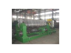 W11-20X2200 machnical plate rolling machine I machine usage range: This equipment is three rolls machine, upper roller can adjust. It is used to bend different diameter of steel into circle sharp. And it is widely used in chemical industry, ships industry and so on. II main technical data: Machine type: W11-20× 2200 Max thickness of plate: 20mm Max width of plate: 2200 Yield limit of the plate: 245Mpa Min thickness of roll plate: 4mm Min diameter with max sizeΦ 700mm Top roller diameterΦ 280mm Bottom roller diameterΦ 240mm Distance of two bottom rollers: 360mm Drive speed: About 4.5m/min Main motor: 11Kw Lifting motor: 5.5Kw Reducer gear: ZSY224 III main structure and working principle: 3-1, this machine is upper roller adjust type, and upper roller in middle of two down rolls and drove by lead screw to move up/down and to bend the steel plate. 3-2 the equipment composed of working parts and drive system two parts. The working parts composed of right and left bearing plate, one upper roll, two down rolls (these three rolls material is 45# steel with heat treatment. ), lifting screw and worm wheel and other accessory parts. Down rolls drive upper rolls to move. Upper rolls can adjust up/down. Drive system composed of main motor, main speed reducer gear and other accessory parts. 3-3 down rolls were drove by main motor and main speed reducer gear, the spindle of main speed reducer drive two down rolls by one group gears, the direction adjusted by the main motor. 3-4 upper rolls lifted by accessory motor and vice speed reducer drive worm pole and worm where of right/left rolls bearing plate. 3-5 unloading device is used for bending circle type to remove the work piece. While unloading the upper rolls move to up limit position, the balance device on upper rolls ends hit upper rolls to remove the work piece. IV Main parts: 4-1 working rolls China 4-2 main motor China 4-3 main electrical parts SUZHOU 4-4 main speed reducer Jiangsu