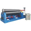Minor diameter can be rolled High efficiency With prebending function Hydraulic drive Series W12 4-roller plate rolling machine Structural characteristics The machine adopts the four-roller structure with the upper roller as the main drive, proving the plates bending with torque through the engagement between the gear of the moderator and the gear of the upper roller. The lower roller makes vertical movements and imposes a force on the position through the hydraulic oil in the hydraulic cylinder so as to clamp the plate tight. Side rollers are arranged on the two sides of the sides of the lower roller, and make inclining movement along the guide rail, and provide drive through the screw, the nut, the worm and the lead screw. The advantage of the machine is that the preliminary bending and rolling of the top ends of the plates can be conducted on the same machine.