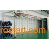 Upholstery Material Powder Coating Line 1. Pre-treatment: To remove the impurity on the object that needs to be painted, such as oxide, rust, grease, etc, to provide a good substrate for spray painting, it adopts the processing of phosphorization, oxidation, passivation to ensure the coating has the properties of antisepsis and decoration. The pre-treatment includes: Spray type, tank-DIP type, skin-diving Major component: Shed body, tank, exhaust systems, pumps and sprinkler system, air supply system, hanging chain protection, water separation equipment, heat exchange system, slag removal system, pickling systems, pure water generation system, temperature control system, electronic control system and other system. 2. Spray painting: Through the spray gun or disc atomizer, by means of pressure or centrifugal force, dispersed into uniform and fine droplets, painting on surface of objects that need to be coating. It can be divided into air spray, airless spray, electrostatic spray coating, and the basic form of various derived methods, such as a large flow of low pressure spray coating, thermal spraying, automatic spraying, and multiple spray. Spray operation with high efficiency, suitable for manual and industrial automation and wide application. Mainly used for metals, plastics, furniture, military, marine and other areas. This technique is currently the most common application of a coating method. Spraying operations require environmental requirements for clean room of million to hundred level. Spraying equipment includes spray gun, spray booth for paint room, drying room, spraying equipment, the workpiece transport operations, anti-fogging and wastewater, waste gas treatment equipment. Kind of coating material: Oil coating, lacquer coating, powder coating, UV oil coating. Kind of spray booth: 1) Dry spray booth: For small quantities and more complex parts 2) Atomizing-type spray chamber: For small parts 3) Water curtain spray chamber: For the medium-sized parts 4) Rotating water spray room: Large decorative pieces, a higher degree of accuracy. Major structure of spray booth: 1) Room Structure: The role is very limited, the paint mist within a certain range. 2) Mist filter: Sub-types of dry and wet. Dry: Mist filter paper in the baffle or infiltration. Wet: The water in the gas mixture, separation of mist particles from the air (wet room rather than the more environmentally friendly dry conditions point) 3) Water supply systems: Ensuring the necessary room for the normal cycle of spray water. 4) The ventilation systems: From gas, exhaust composition, equipment has a certain temperature, humidity and air cleanliness, to ensure that indoor air laminar flow conditions. 5) Lighting: To ensure good lighting. 3. Stoving: As the heavy construction machinery and parts machine, heat capacity, so it's anti-rust coating drying, generally uniform baking hot air convection drying method. Heat source can be local conditions, use of steam, electricity, light diesel oil, natural gas and liquefied petroleum gas. Divided into: Hanging air furnace, tunnel furnace, oven cabinet. Major component: 1) Drying room: To cycle hot air does not spill, so that the indoor temperature is kept within a certain range 2) The heating system: A radiation heating and convection heating to ensure the indoor air temperature in the range of technological requirements 3) Duct: Guide the hot air circulating in the drying room, the heat to the workpiece 4) Air filter: Filter dust in the air 5) Air heater; Heated indoor air circulation 6) Fan: Forced hot air circulation drying room 7) Air curtain system: To prevent the hot air to leak out, to improve thermal efficiency 8) Temperature control system: To ensure that indoor temperature of each device to process requirements