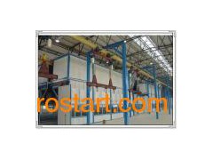 Outdoor Construction Materials Powder Coating Line 1. Pre-treatment: To remove the impurity on the object that needs to be painted, such as oxide, rust, grease, etc, to provide a good substrate for spray painting, it adopts the processing of phosphorization, oxidation, passivation to ensure the coating has the properties of antisepsis and decoration. The pre-treatment includes: Spray type, tank-DIP type, skin-diving Major component: Shed body, tank, exhaust systems, pumps and sprinkler system, air supply system, hanging chain protection, water separation equipment, heat exchange system, slag removal system, pickling systems, pure water generation system, temperature control system, electronic control system and other system. 2. Spray painting: Through the spray gun or disc atomizer, by means of pressure or centrifugal force, dispersed into uniform and fine droplets, painting on surface of objects that need to be coating. It can be divided into air spray, airless spray, electrostatic spray coating, and the basic form of various derived methods, such as a large flow of low pressure spray coating, thermal spraying, automatic spraying, and multiple spray. Spray operation with high efficiency, suitable for manual and industrial automation and wide application. Mainly used for metals, plastics, furniture, military, marine and other areas. This technique is currently the most common application of a coating method. Spraying operations require environmental requirements for clean room of million to hundred level. Spraying equipment includes spray gun, spray booth for paint room, drying room, spraying equipment, the workpiece transport operations, anti-fogging and wastewater, waste gas treatment equipment. Kind of coating material: Oil coating, lacquer coating, powder coating, UV oil coating. Kind of spray booth: 1) Dry spray booth: For small quantities and more complex parts 2) Atomizing-type spray chamber: For small parts 3) Water curtain spray chamber: For the medium-sized parts 4) Rotating water spray room: Large decorative pieces, a higher degree of accuracy. Major structure of spray booth: 1) Room Structure: The role is very limited, the paint mist within a certain range. 2) Mist filter: Sub-types of dry and wet. Dry: Mist filter paper in the baffle or infiltration. Wet: The water in the gas mixture, separation of mist particles from the air (wet room rather than the more environmentally friendly dry conditions point) 3) Water supply systems: Ensuring the necessary room for the normal cycle of spray water. 4) The ventilation systems: From gas, exhaust composition, equipment has a certain temperature, humidity and air cleanliness, to ensure that indoor air laminar flow conditions. 5) Lighting: To ensure good lighting. 3. Stoving: As the heavy construction machinery and parts machine, heat capacity, so it's anti-rust coating drying, generally uniform baking hot air convection drying method. Heat source can be local conditions, use of steam, electricity, light diesel oil, natural gas and liquefied petroleum gas. Divided into: Hanging air furnace, tunnel furnace, oven cabinet. Major component: 1) Drying room: To cycle hot air does not spill, so that the indoor temperature is kept within a certain range 2) The heating system: A radiation heating and convection heating to ensure the indoor air temperature in the range of technological requirements 3) Duct: Guide the hot air circulating in the drying room, the heat to the workpiece 4) Air filter: Filter dust in the air 5) Air heater; Heated indoor air circulation 6) Fan: Forced hot air circulation drying room 7) Air curtain system: To prevent the hot air to leak out, to improve thermal efficiency 8) Temperature control system: To ensure that indoor temperature of each device to process requirements.