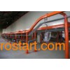 Sewing machine Powder Coating Line 1. Pre-treatment: To remove the impurity on the object that needs to be painted, such as oxide, rust, grease, etc, to provide a good substrate for spray painting, it adopts the processing of phosphorization, oxidation, passivation to ensure the coating has the properties of antisepsis and decoration. The pre-treatment includes: Spray type, tank-DIP type, skin-diving Major component: Shed body, tank, exhaust systems, pumps and sprinkler system, air supply system, hanging chain protection, water separation equipment, heat exchange system, slag removal system, pickling systems, pure water generation system, temperature control system, electronic control system and other system. 2. Spray painting: Through the spray gun or disc atomizer, by means of pressure or centrifugal force, dispersed into uniform and fine droplets, painting on surface of objects that need to be coating. It can be divided into air spray, airless spray, electrostatic spray coating, and the basic form of various derived methods, such as a large flow of low pressure spray coating, thermal spraying, automatic spraying, and multiple spray. Spray operation with high efficiency, suitable for manual and industrial automation and wide application. Mainly used for metals, plastics, furniture, military, marine and other areas. This technique is currently the most common application of a coating method. Spraying operations require environmental requirements for clean room of million to hundred level. Spraying equipment includes spray gun, spray booth for paint room, drying room, spraying equipment, the workpiece transport operations, anti-fogging and wastewater, waste gas treatment equipment. Kind of coating material: Oil coating, lacquer coating, powder coating, UV oil coating. Kind of spray booth: 1) Dry spray booth: For small quantities and more complex parts 2) Atomizing-type spray chamber: For small parts 3) Water curtain spray chamber: For the medium-sized parts 4) Rotating water spray room: Large decorative pieces, a higher degree of accuracy. Major structure of spray booth: 1) Room Structure: The role is very limited, the paint mist within a certain range. 2) Mist filter: Sub-types of dry and wet. Dry: Mist filter paper in the baffle or infiltration. Wet: The water in the gas mixture, separation of mist particles from the air (wet room rather than the more environmentally friendly dry conditions point) 3) Water supply systems: Ensuring the necessary room for the normal cycle of spray water. 4) The ventilation systems: From gas, exhaust composition, equipment has a certain temperature, humidity and air cleanliness, to ensure that indoor air laminar flow conditions. 5) Lighting: To ensure good lighting. 3. Stoving: As the heavy construction machinery and parts machine, heat capacity, so it's anti-rust coating drying, generally uniform baking hot air convection drying method. Heat source can be local conditions, use of steam, electricity, light diesel oil, natural gas and liquefied petroleum gas. Divided into: Hanging air furnace, tunnel furnace, oven cabinet. Major component: 1) Drying room: To cycle hot air does not spill, so that the indoor temperature is kept within a certain range 2) The heating system: A radiation heating and convection heating to ensure the indoor air temperature in the range of technological requirements 3) Duct: Guide the hot air circulating in the drying room, the heat to the workpiece 4) Air filter: Filter dust in the air 5) Air heater; Heated indoor air circulation 6) Fan: Forced hot air circulation drying room 7) Air curtain system: To prevent the hot air to leak out, to improve thermal efficiency 8) Temperature control system: To ensure that indoor temperature of each device to process requirements